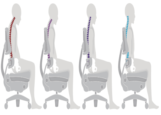 Supporting the pelvis throughout the sitting day prevents the pelvis from “collapsing”, resulting in slouching. The body adapts to good sitting over time and will result in improved posture overall.